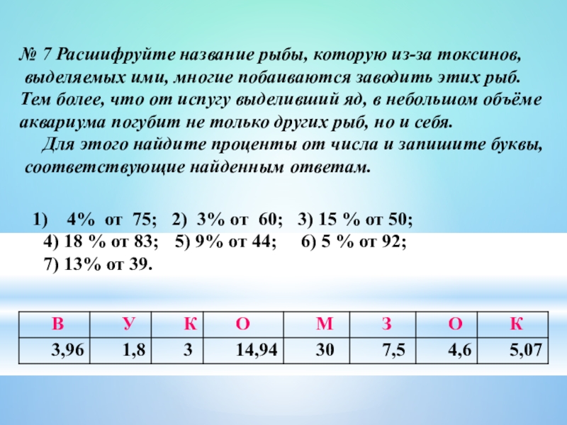 4% от 75; 2) 3% от 60; 3) 15 % от 50;