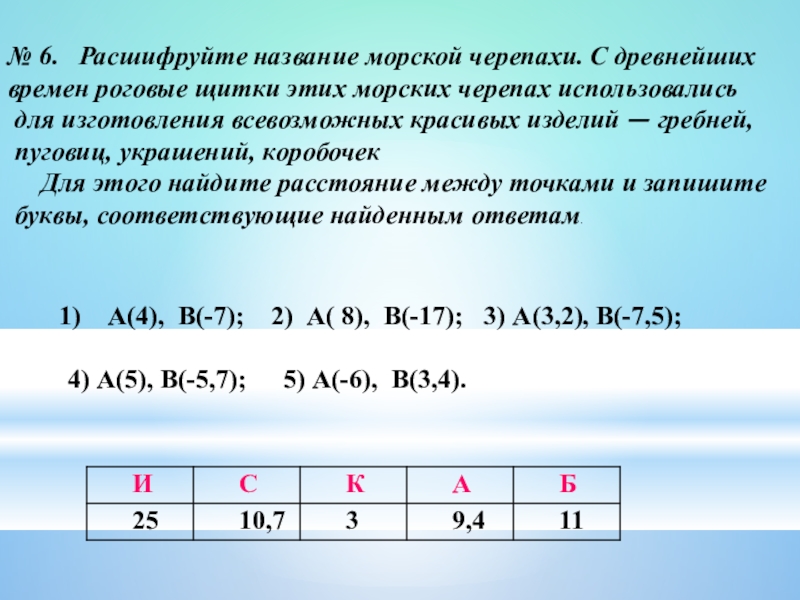 4) А(5), В(-5,7); 5) А(-6), В(3,4).