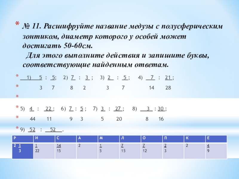 5) 4 : 22 ; 6) 7 : 5 ; 7) 3 : 27 ; 8) 3 : 30 ;