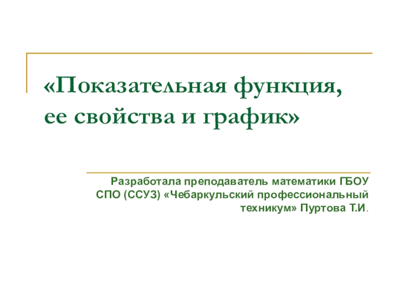 (ССУЗ) «Чебаркульский профессиональный техникум» Пуртова Т.И.