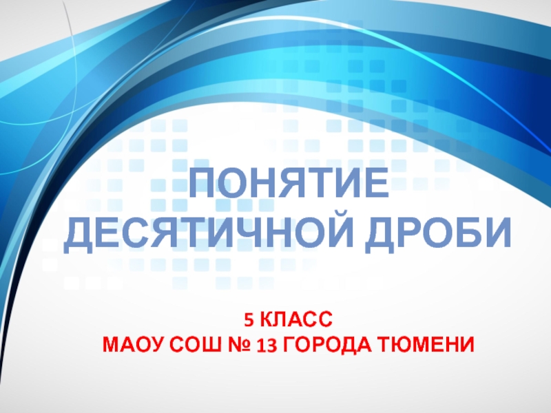 Слайд 1Понятие десятичной дроби 5 класс МАОУ СОШ № 13 города Тюмени