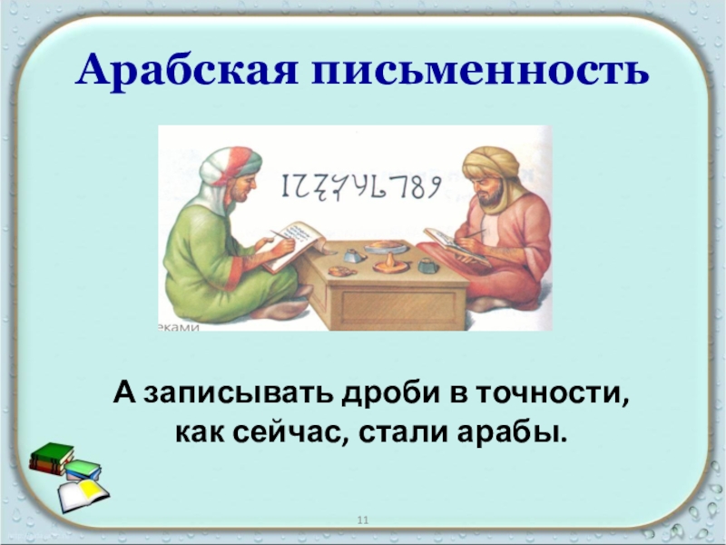Арабская письменность А записывать дроби в точности, как сейчас, стали арабы. 11