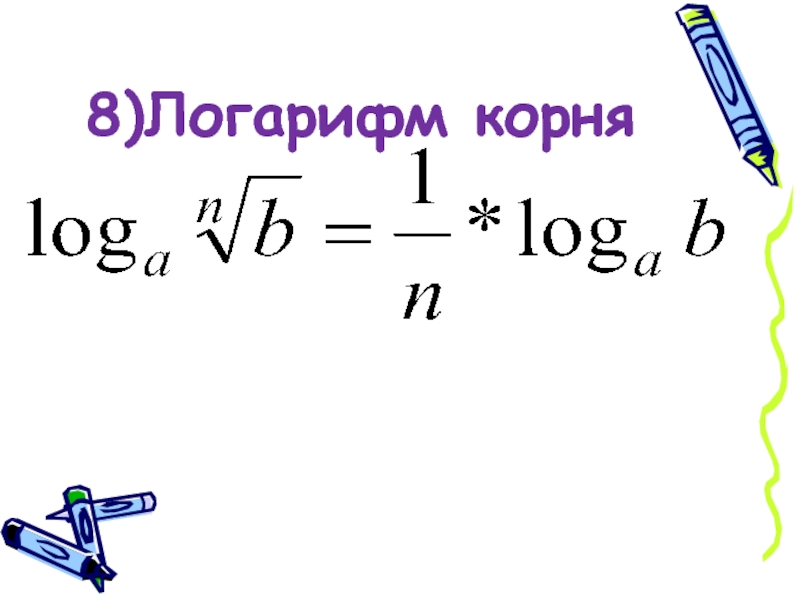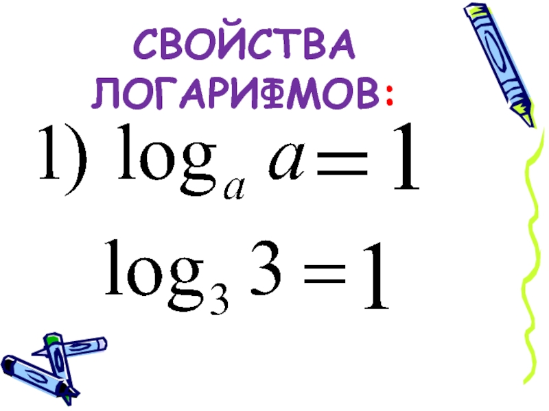 Слайд 12СВОЙСТВА ЛОГАРИФМОВ: