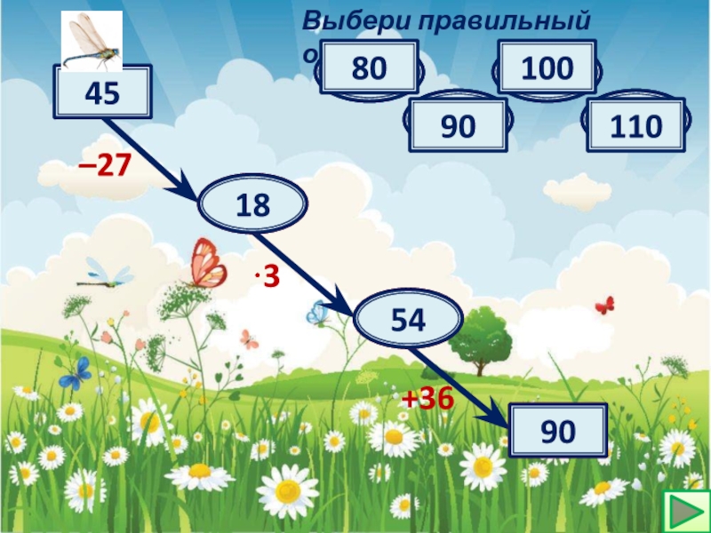 45??Выбери правильный ответ:–2722?28121818·35158575454+36901109010080