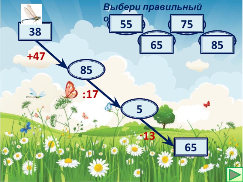 38??Выбери правильный ответ:+4775?81718585:1776455·136555758565