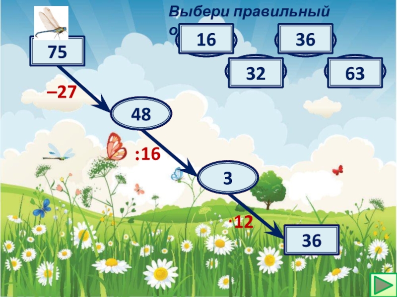 75??Выбери правильный ответ:–2758?52424848:1625433·123663321636