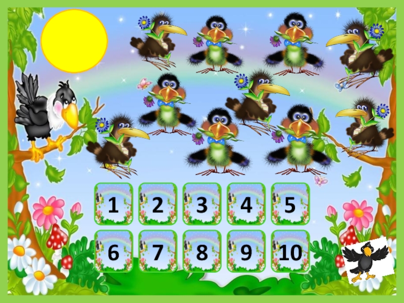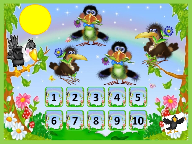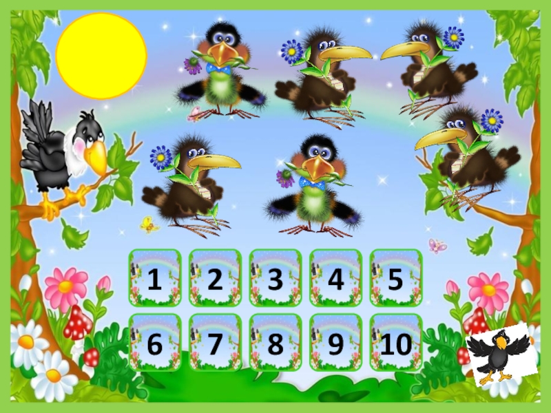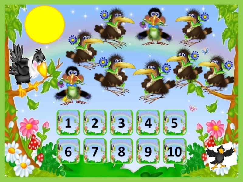 Презентация, доклад по математике Посчитай птичек (1 класс)