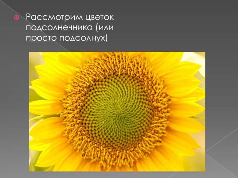 Слайд 8Рассмотрим цветок подсолнечника (или просто подсолнух)