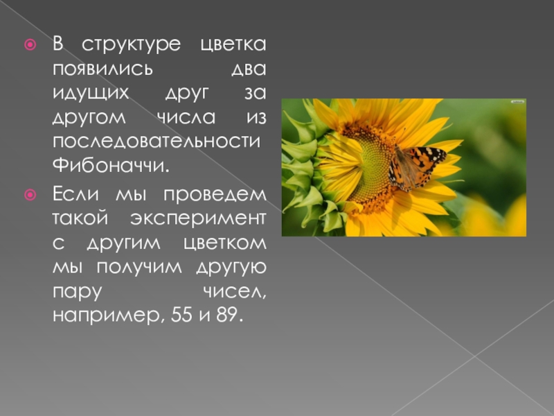 Слайд 10В структуре цветка появились два идущих друг за другом числа из