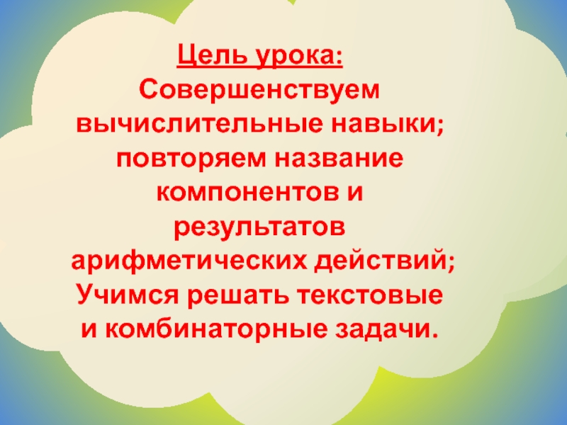 Совершенствуем вычислительные навыки; повторяем название компонентов и результатов арифметических действий;