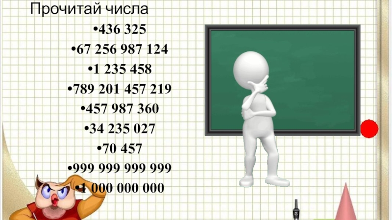 Прочитай числа 436 32567 256 987 1241 235 458 789 201 457 219 457 987 36034 235