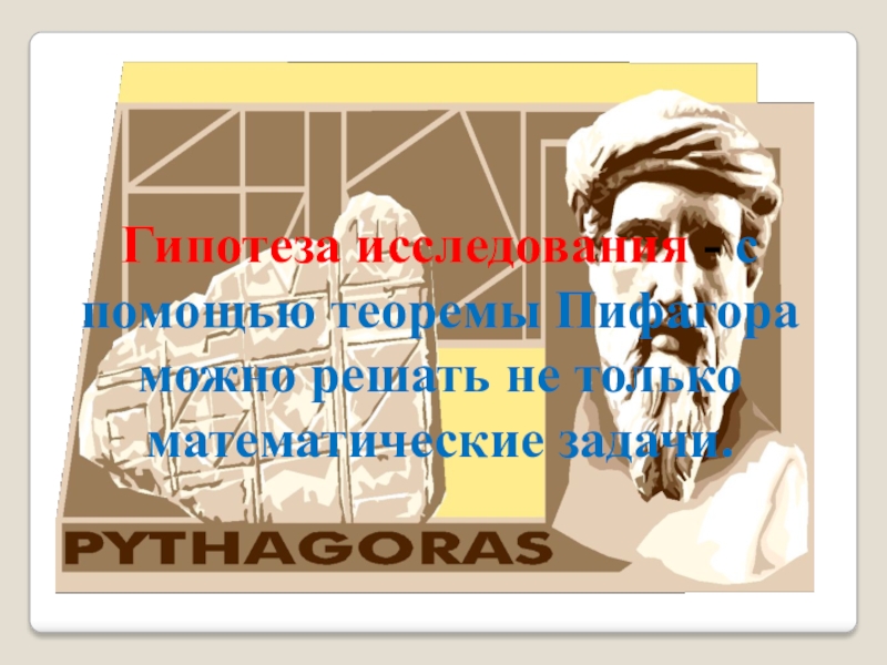 Слайд 5Гипотеза исследования - с помощью теоремы Пифагора можно решать не только