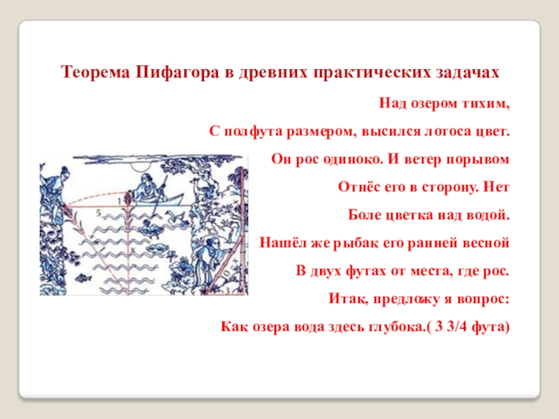 Слайд 13Теорема Пифагора в древних практических задачах