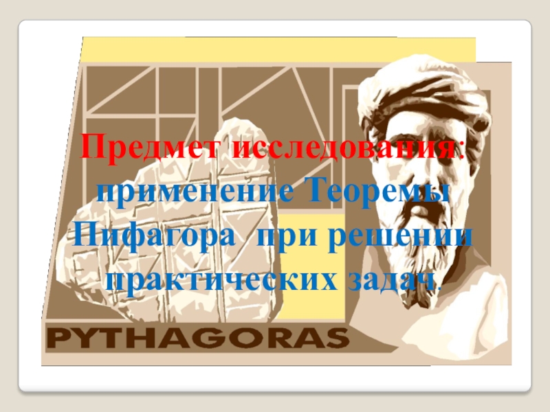 Слайд 4Предмет исследования: применение Теоремы Пифагора при решении практических задач.