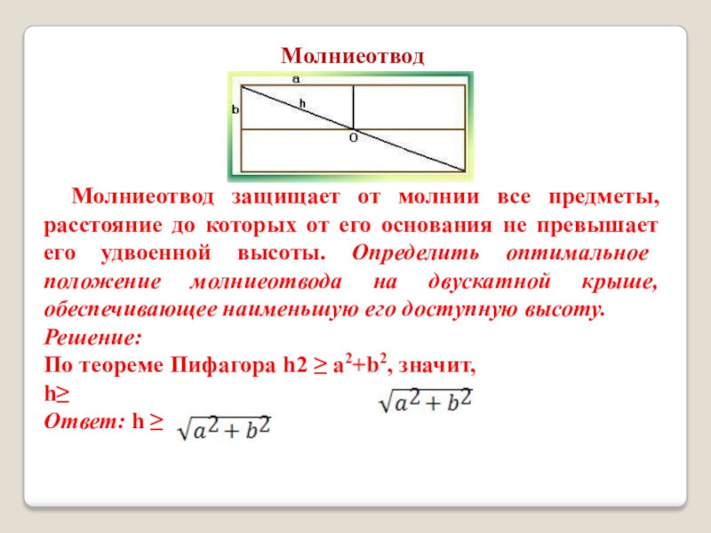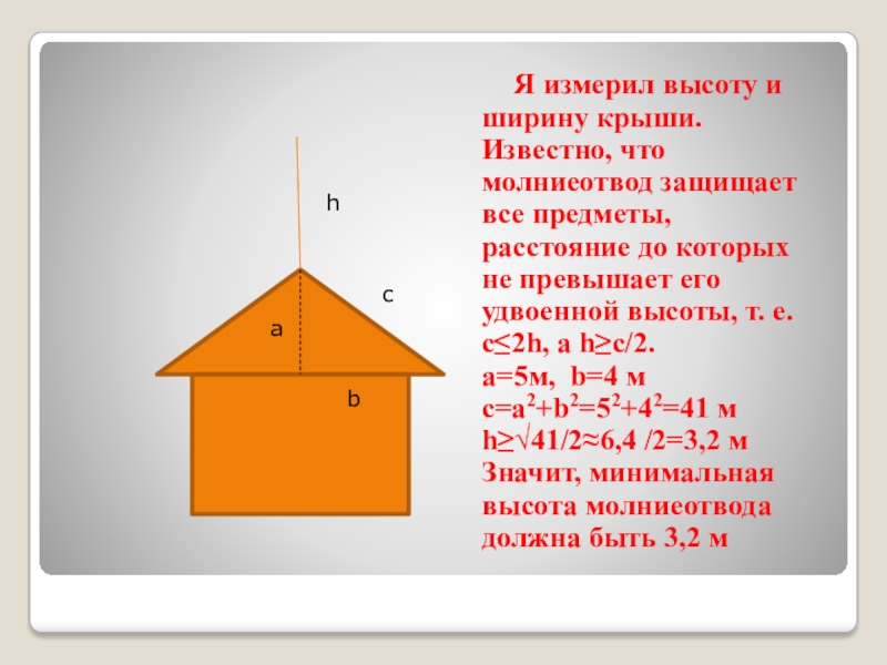 Слайд 22Я измерил высоту и ширину крыши. Известно, что молниеотвод защищает все