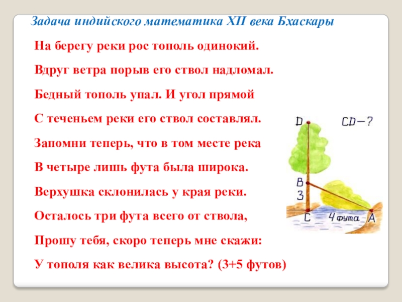 Слайд 15Задача индийского математика XII века Бхаскары