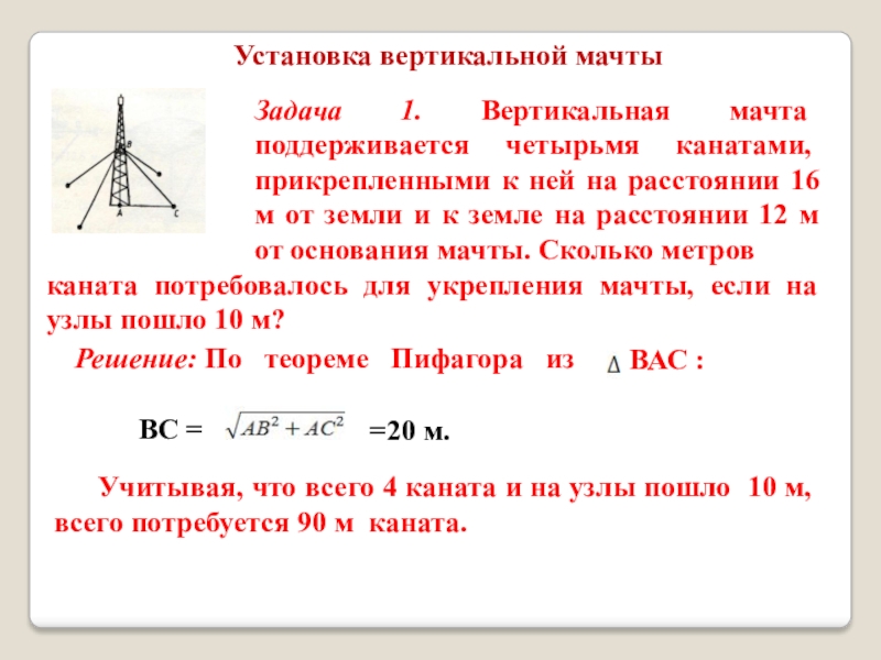 Задача 1. Вертикальная мачта поддерживается четырьмя канатами,