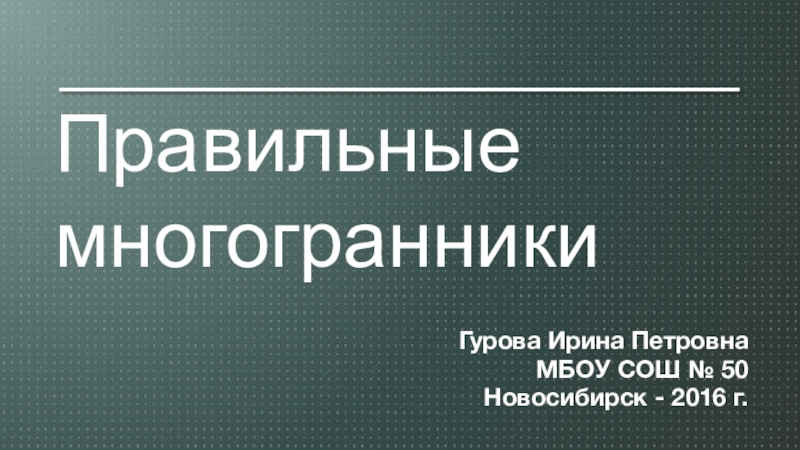 Правильные многогранникиГурова Ирина ПетровнаМБОУ СОШ № 50Новосибирск - 2016 г.