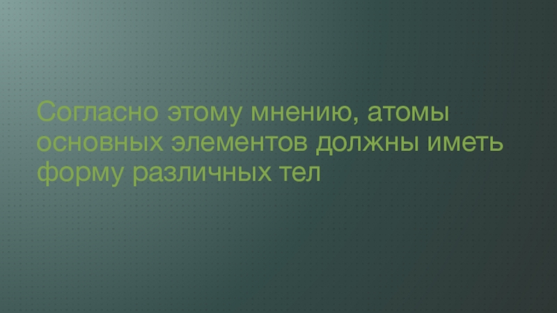 Слайд 6Согласно этому мнению, атомы основных элементов должны иметь форму различных тел