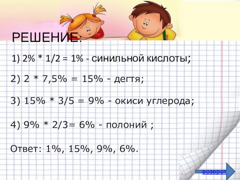3) 15% * 3/5 = 9% - окиси углерода;