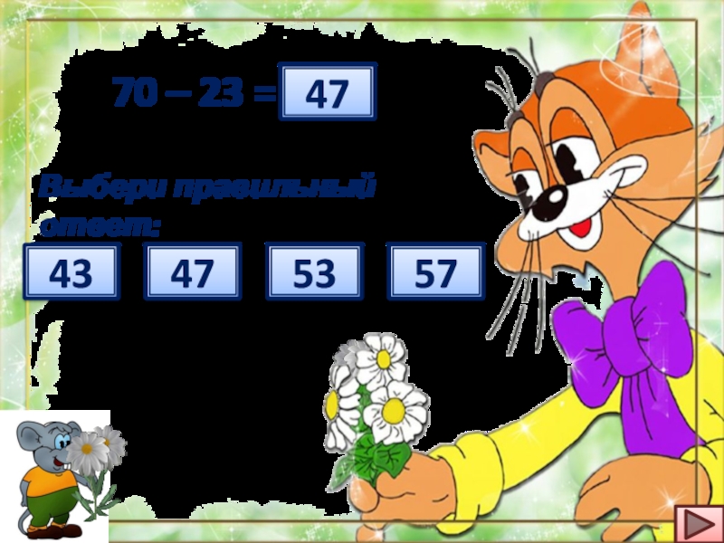 70 – 23 = ? Выбери правильный ответ:4747575343