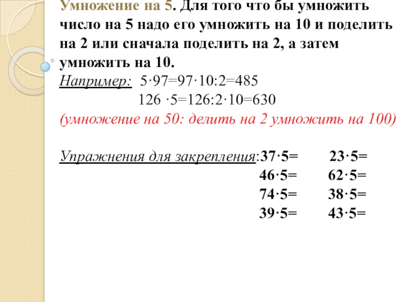 Умножение на 5. Для того что бы умножить число на
