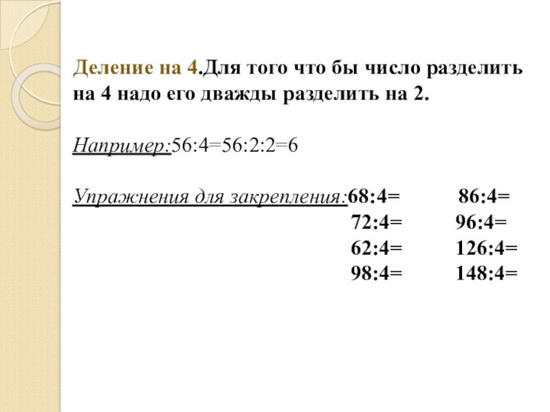 Слайд 17 Деление на 4.Для того что бы число разделить на 4