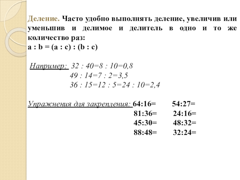 Слайд 18Деление. Часто удобно выполнять деление, увеличив или уменьшив и делимое и