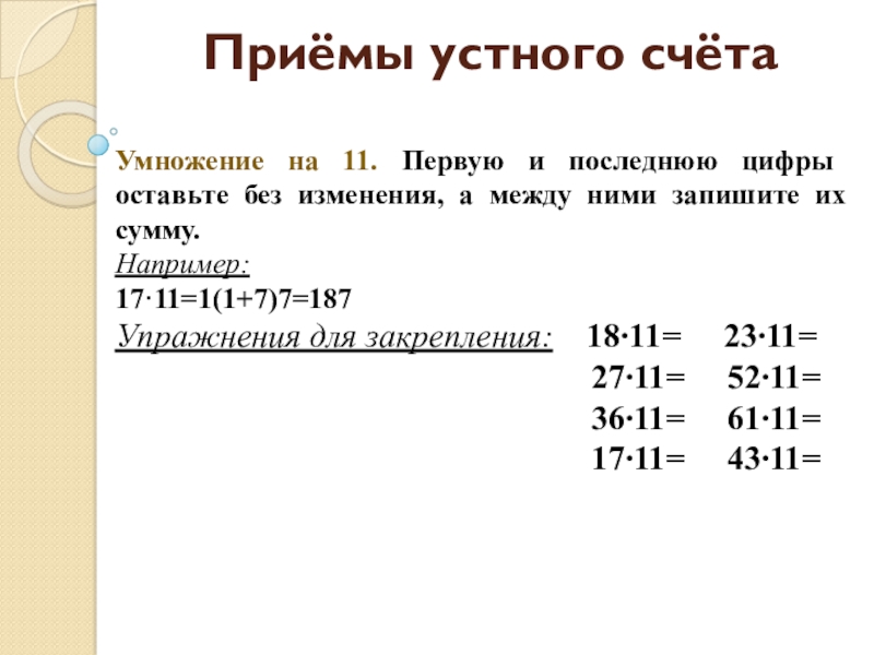 Слайд 9Приёмы устного счёта