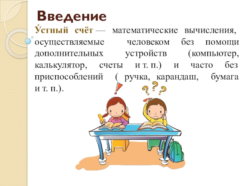 калькулятор, счеты и т. п.) и часто без приспособлений ( ручка, карандаш, бумага и т. п.).