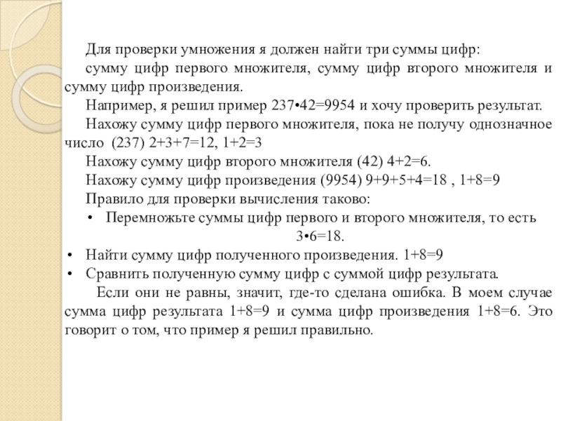 Слайд 23Для проверки умножения я должен найти три суммы цифр: