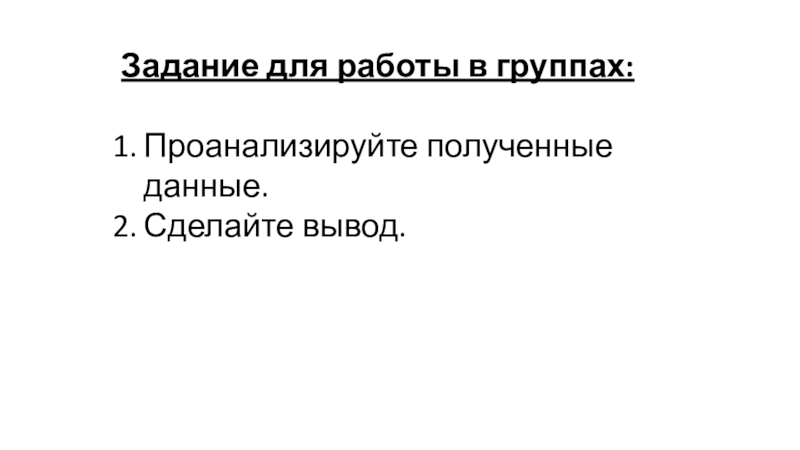 Задание для работы в группах:Проанализируйте полученные данные.Сделайте вывод.