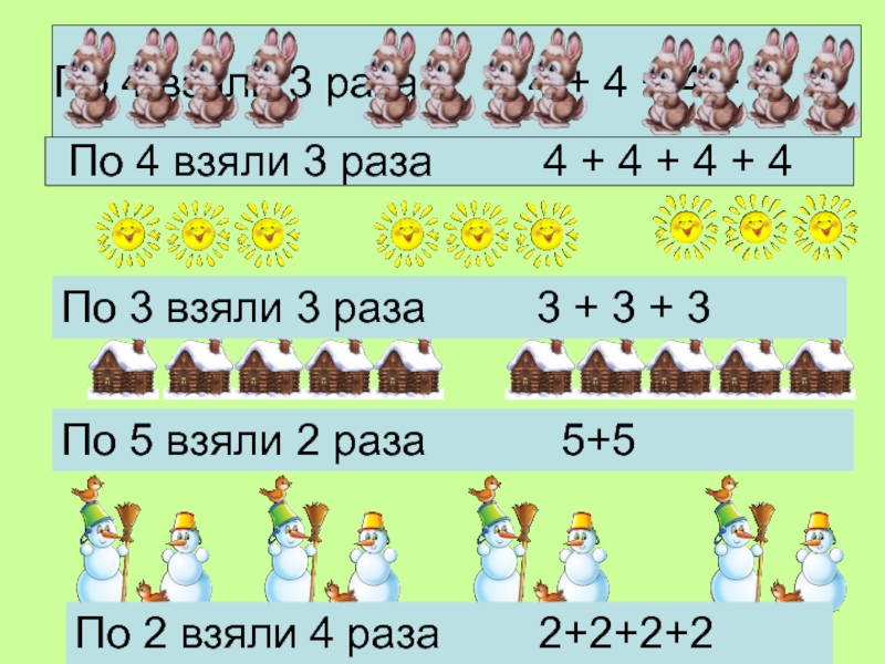 По 4 взяли 3 раза 4 + 4 + 4 + 4
