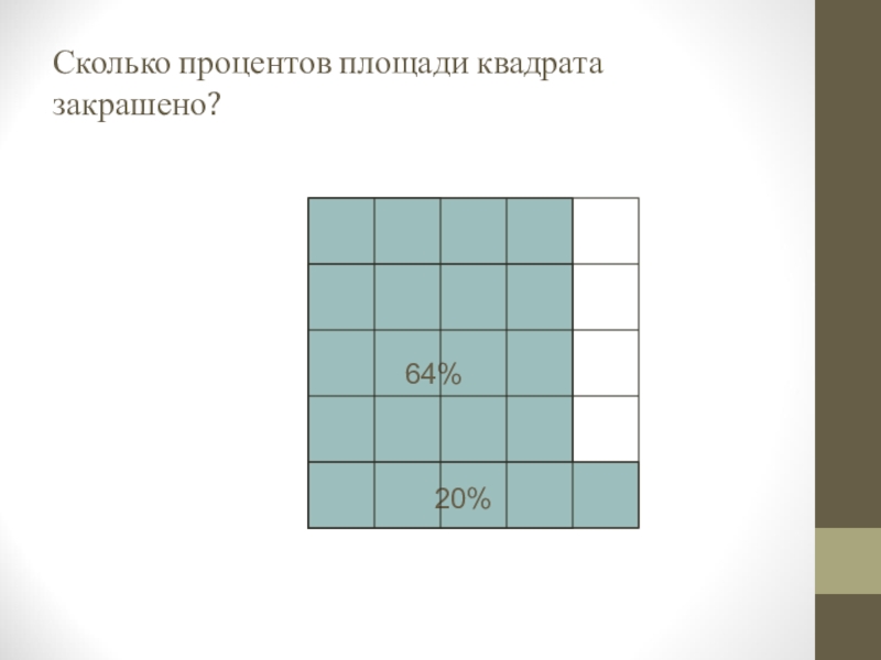 Слайд 2Сколько процентов площади квадрата закрашено?