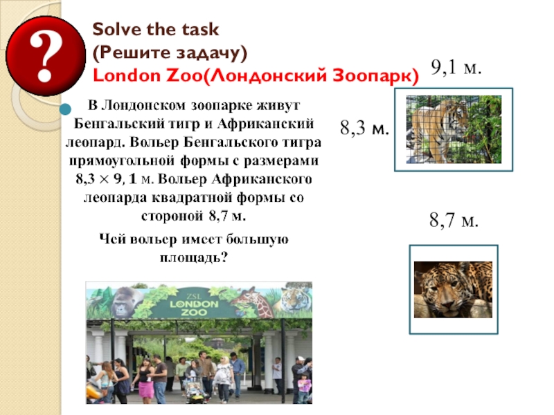 Solve the task (Решите задачу) London Zoo(Лондонский Зоопарк)    9,1 м.8,3 м.   8,7