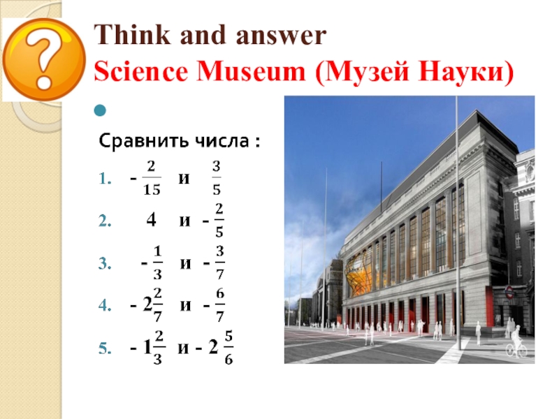 Слайд 13Think and answer Science Museum (Музей Науки)