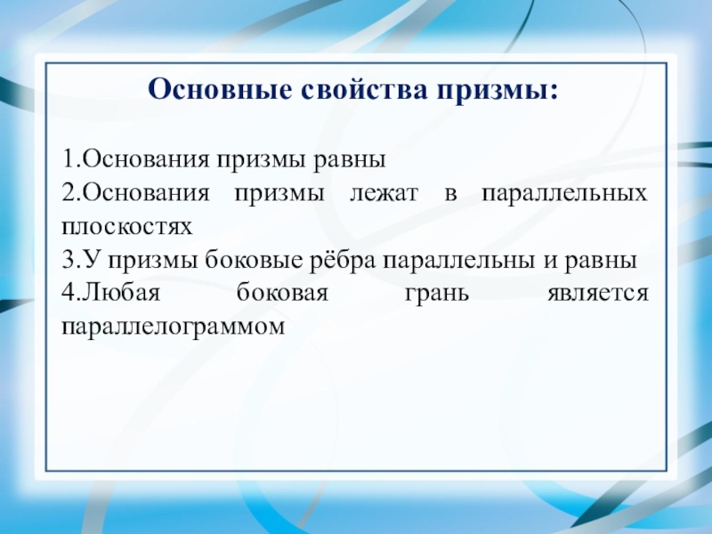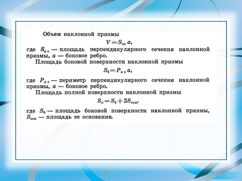 Наклонная призма – это призма, боковые рёбра которой не перпендикулярны основанию.