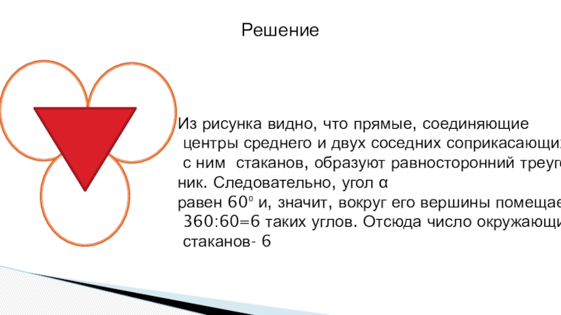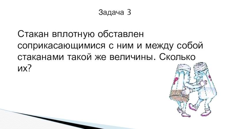 Стакан вплотную обставлен соприкасающимися с ним и между собой стаканами