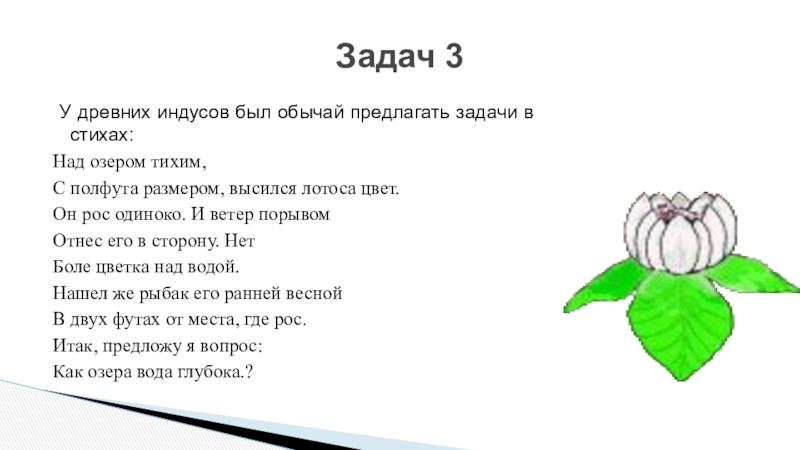 Слайд 2В подборке представлены задачи с реальным содержанием: из обиходной жизни, из