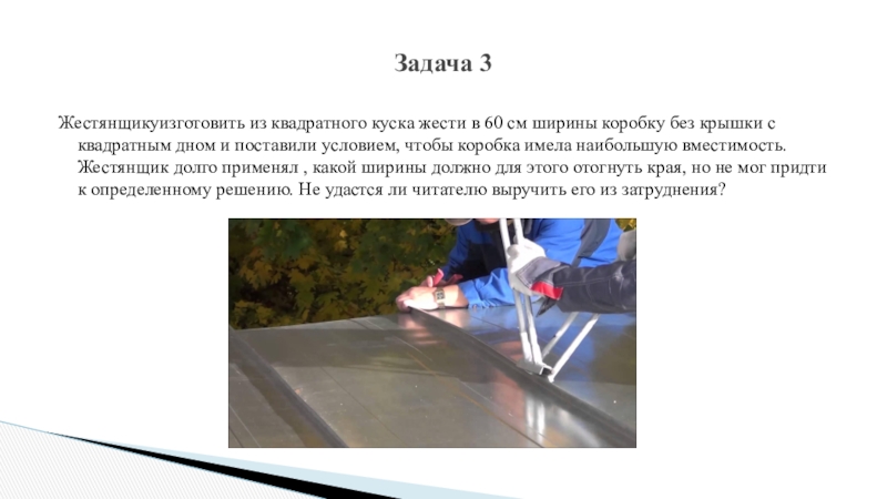 Жестянщикуизготовить из квадратного куска жести в 60 см ширины коробку