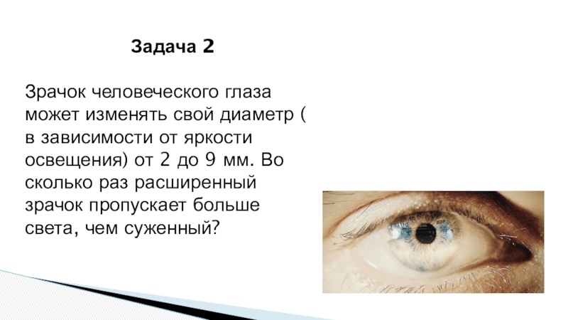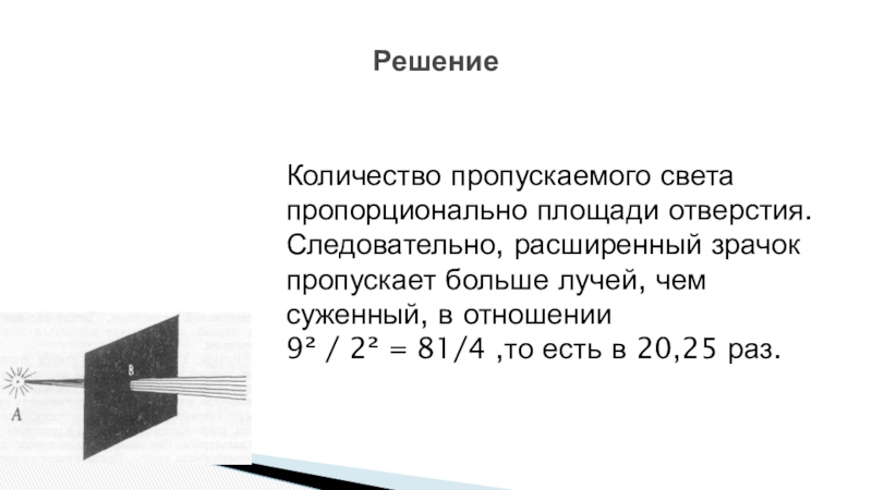 от яркости освещения) от 2 до 9 мм. Во сколько раз расширенный зрачок пропускает больше света, чем суженный?