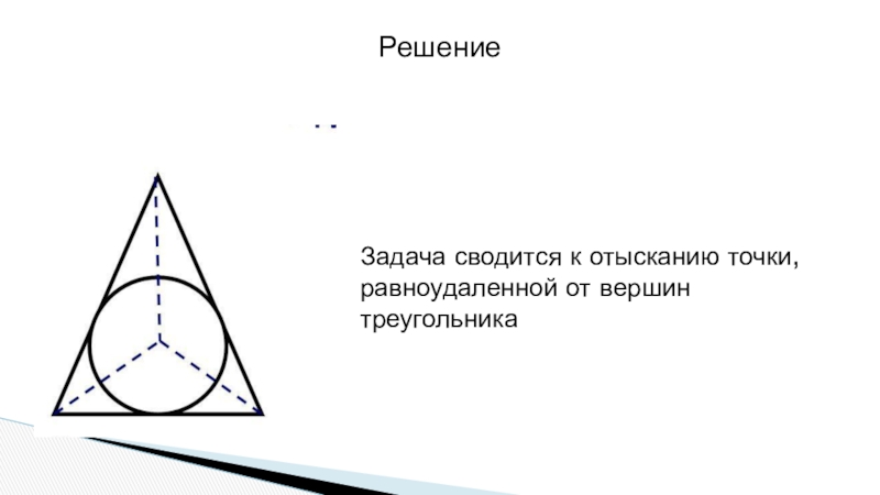 Задача сводится к отысканию точки, равноудаленной от вершин треугольника