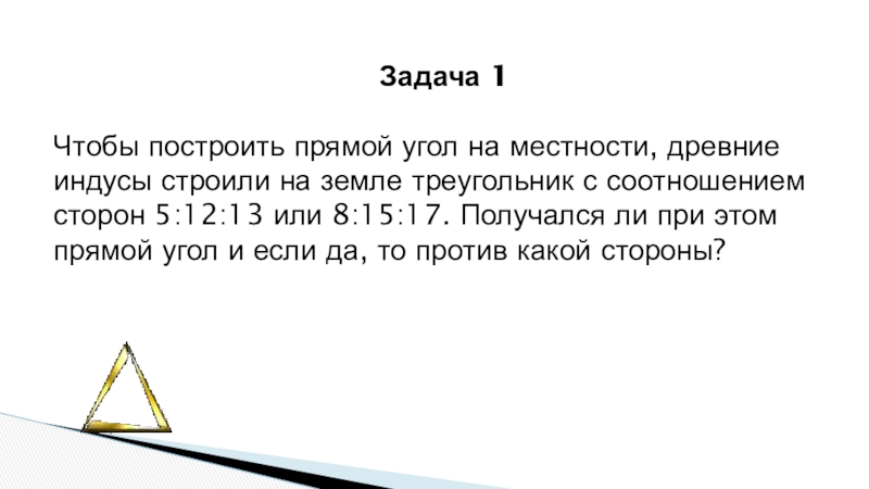 Чтобы построить прямой угол на местности, древние индусы строили на