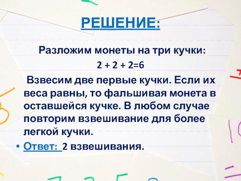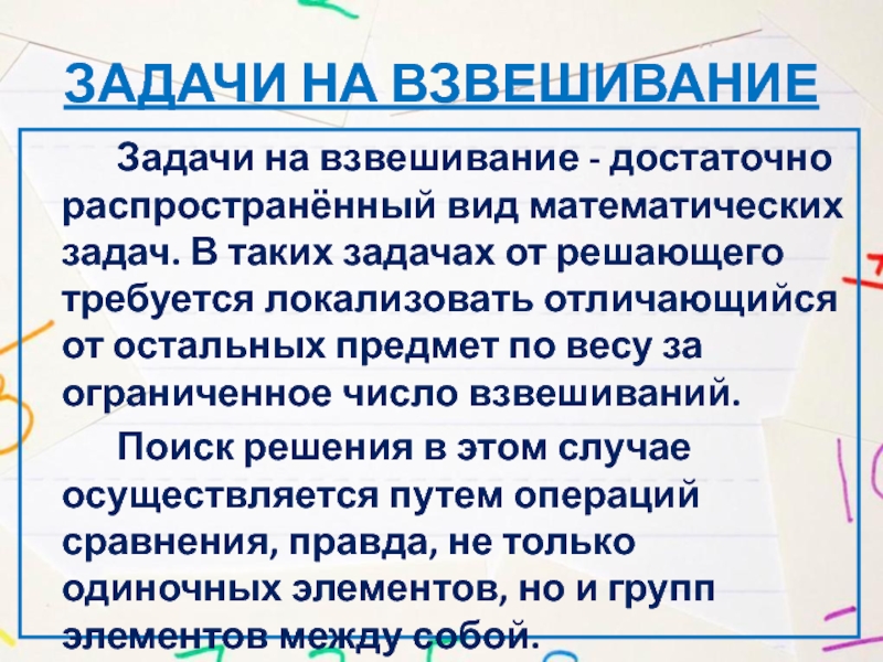 ЗАДАЧИ НА ВЗВЕШИВАНИЕ