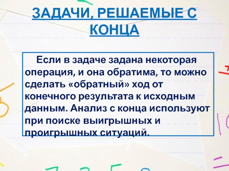 ЗАДАЧИ, РЕШАЕМЫЕ С КОНЦА
