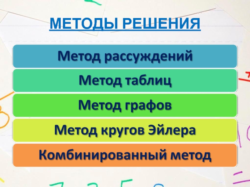 Слайд 1МЕТОДЫ РЕШЕНИЯ ЛОГИЧЕСКИХ ЗАДАЧ