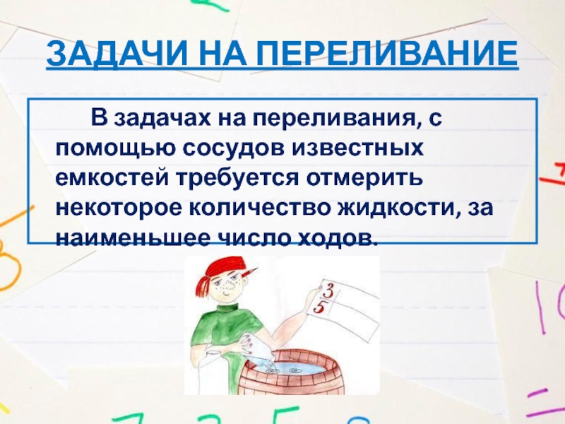 Слайд 20ЗАДАЧИ НА ПЕРЕЛИВАНИЕ
