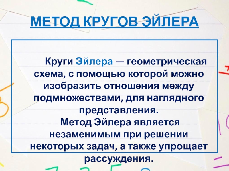 Слайд 13МЕТОД КРУГОВ ЭЙЛЕРА