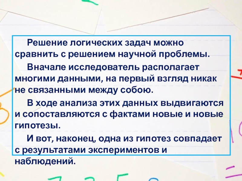 Слайд 26 Решение логических задач можно сравнить с решением научной проблемы.