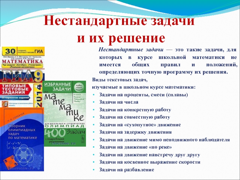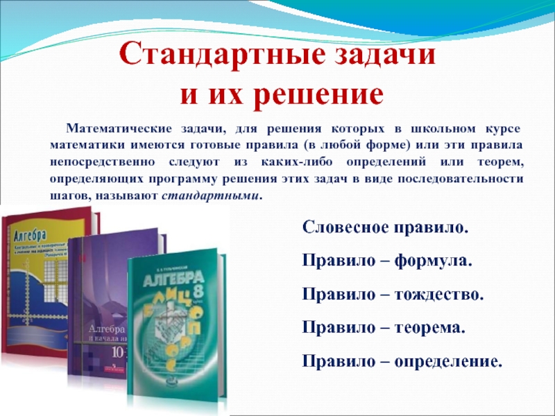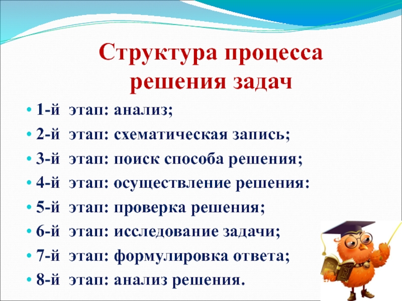 Рассмотреть структуру процесса решения задачи, стандартные задачи и их решение;